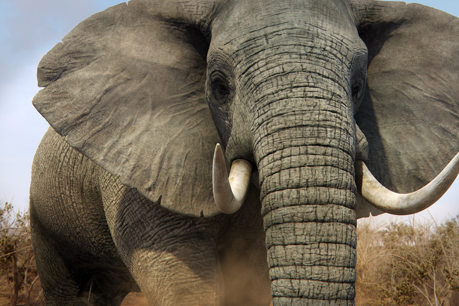 3D visual of an African Elephant. Modelled and rendered in MODO. Texture painting in MARI.