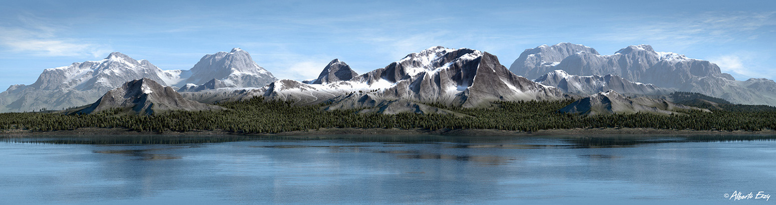 Landscape inspired by the vista's in Montana. Based on real world elevation data. Featured in '3D Artist Magazine - Siggraph Edition'.